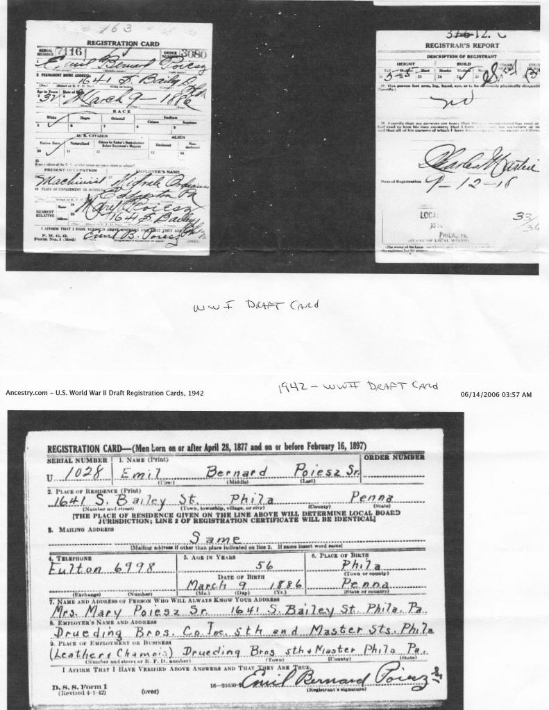 As a reminder of times past, it’s also worthy of note that Emil Sr. – Grandpop – was registered for the draft for both World War I and World War II.